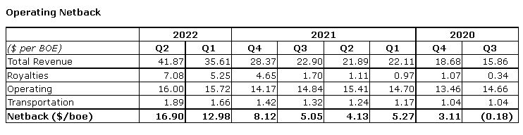 Improved netback per boe by 309% to $16.90/boe ($30.24/boe excluding the impact of fixed price physical forward sales contracts) from $4.13/boe in Q2 2021;