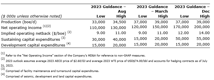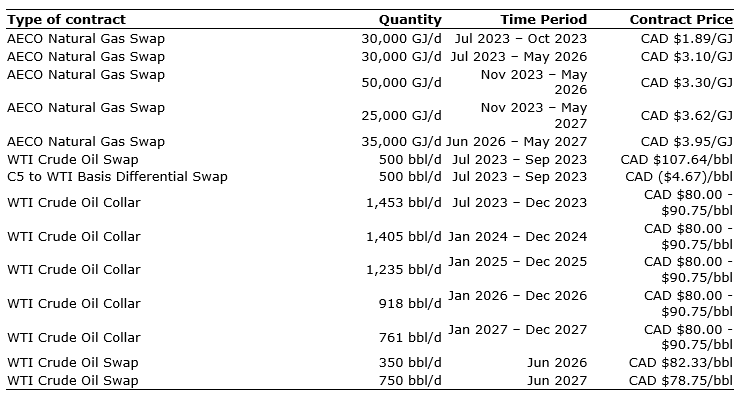 • Lower commodity sales revenue was partially offset by the company's hedging program with Q2 2023 hedging gains of $13.6-million ($4.60 per boe).