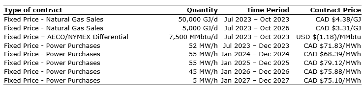 Forward natural gas and natural gas liquids prices have continued to experience downward pressure since March, 2023, through the typically lower-priced summer season. Pieridae's robust hedge position will partially mitigate the lower expected prices through the second half of 2023, although not to the same extent as the first half of the year.