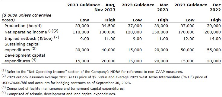 Pieridae is currently completing its 2024 budget planning process in the context of flat to slightly stronger AECO natural gas pricing in 2024 coupled with cost reduction initiatives now underway. 2024 production, net operating income and capital expenditure guidance will be announced late in the fourth quarter of 2023 once approved by the Board of Directors.