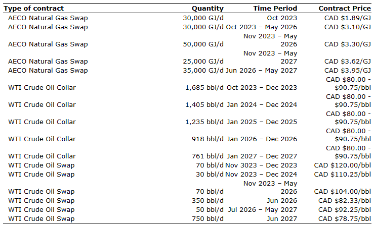 The Company had the following financial risk management contracts in place as at September 30, 2023: