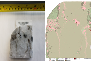 QEMSCAN results from Sample SRC198159 (figure 4) from the high-grade zone of the Big Mack Pegmatite showed the sample contained 75.87% petalite (LiAlSi₄O₁₀), the main ore mineral responsible for identifying the Big Mack Lithium Project as being prospective for high-grade lithium mineralization.