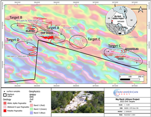 CALGARY, Alberta, Nov. 08, 2023 (GLOBE NEWSWIRE) -- Pan American Energy Corp. (CSE: PNRG | OTC: PAANF | FRA: SS60) ("Pan American” or the "Company") is pleased to announce that it has commenced drilling on its Big Mack Lithium Project, located approximately 80 kilometers north of the town of Kenora, ON. The exploration program is being carried out by Fullforce Diamond Drilling Ltd. (“Full Force”) under the geological support of Axiom Exploration Group Ltd. (“Axiom”). The Company plans to drill approximately 5,000 meters.