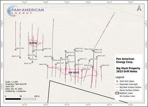 CALGARY, Alberta, Dec. 12, 2023 (GLOBE NEWSWIRE) -- Pan American Energy Corp. (CSE: PNRG | OTC: PAANF | FRA: SS60) ("Pan American” or the "Company") is pleased to announce assay results from the first diamond drill hole of the 2023 program on the Big Mack Lithium Project (“Property”), located approximately 80 kilometers north of the town of Kenora, ON. The drilling campaign is being carried out by Fullforce Diamond Drilling Ltd. (“Full Force”) under the geological guidance of Axiom Exploration Group Ltd. (“Axiom”).