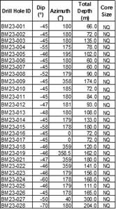 Table 2: Attributes for Drill Hole BM23-001