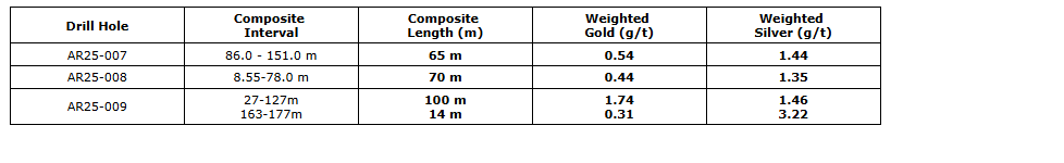 A gold-dominant bulk-tonnage target with consistent silver credits is also identified at the Twin zone (Feb. 2, 2026) as shown in the attached table.