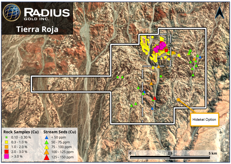 October 2, 2025 – TheNewswire - Vancouver, Canada – Radius Gold Inc. (TSXV: RDU) ("Radius" or the "Company") is pleased to announce that it has signed a Mining Assignment and Option Agreement to acquire the 1,800-hectare Hidekel concessions directly adjoining its 100%-owned Tierra Roja copper project in southern Peru (see press release Feb 28, 2025). The remaining concessions under review have been released. The signing of this Mining Assignment and Option Agreement consolidates Radius’s land position at Tierra Roja and strengthens the Company’s control over one of the most compelling copper exploration targets in the district.