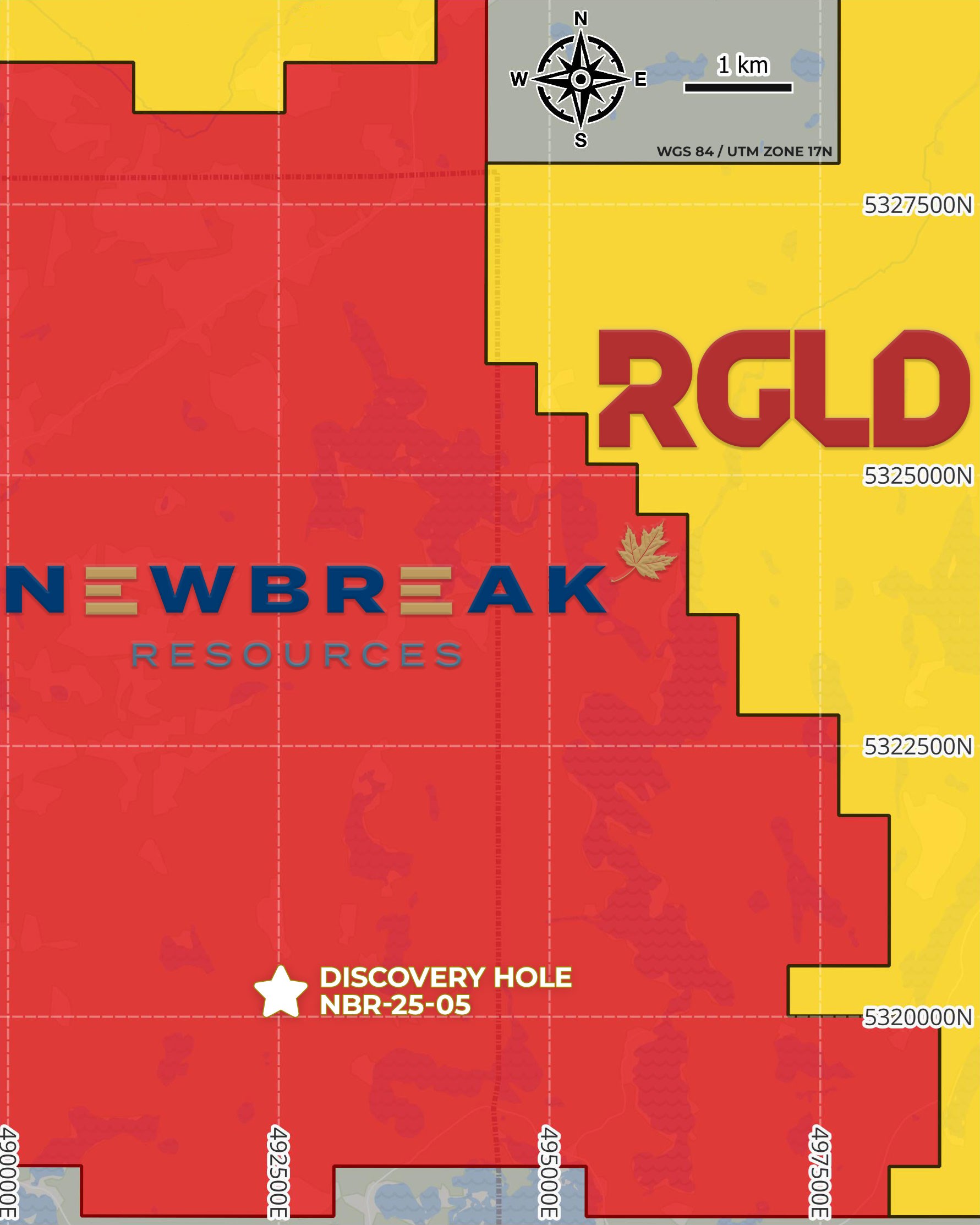 The Issuer notes that New Break has already identified what it views as compelling gold grab samples trending in a north/north-easterly direction in (third-party) mapped volcanic rocks, with those mapped volcanics extending onwards from New Break's Moray Gold Project into the Issuer's Moray East Gold Project.