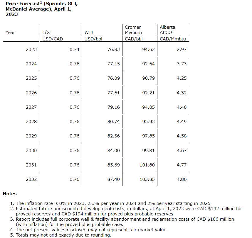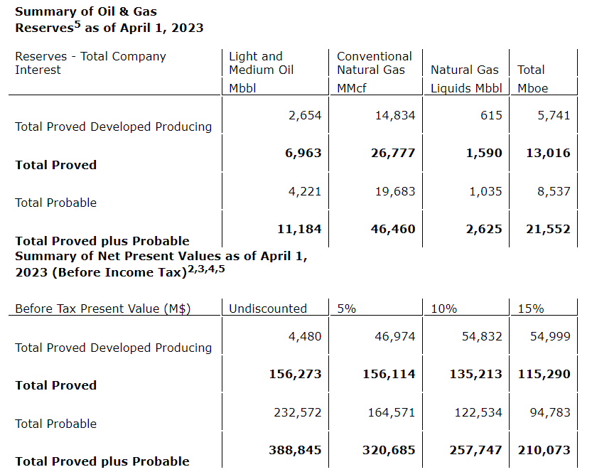 - Total 1P NAV of 59 cents/basic share and 2P NAV of $1.17/basic share, up 25 per cent and 35 per cent, respectively, from year-end 2022, despite a an approximate 30-per-cent drop in 2023 AECO pricing and approximate 5-per-cent drop in 2023 WTI pricing;
