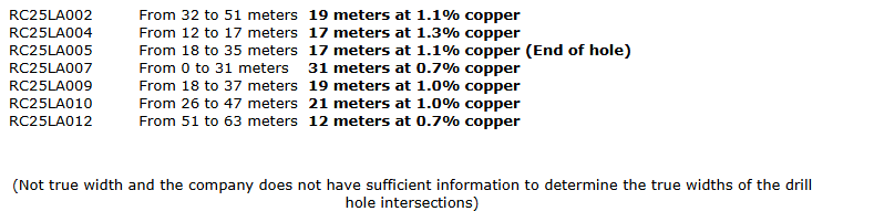 These initial results confirm that economically significant copper grades extend across the width of the mineralized structure. Mineralization demonstrates continuity along strike and remains open, with indications of extension at depth.