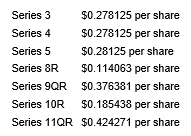 The board also declared dividends on the company's Class A non-cumulative preferred shares, payable on Sept. 29, 2023, to shareholders of record at the close of business on Aug. 30, 2023, as shown in the attached table.