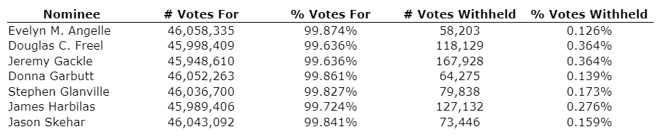 At Step Energy Services Ltd.'s 2023 annual general and special meeting of shareholders held on June 22, 2023, each of the seven nominees were elected as directors of Step on a vote passed by ballot to serve until the next annual meeting of shareholders of Step, or until their successors are elected or earlier appointed. Votes received by proxy or in person on this matter were as noted herein.