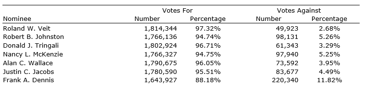 MNP LLP was appointed as auditor with 91.92-per-cent voting support.