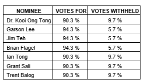 Seven directors were elected at the annual general meeting of shareholders of Taiga Building Products Ltd., held on May 4, 2023.