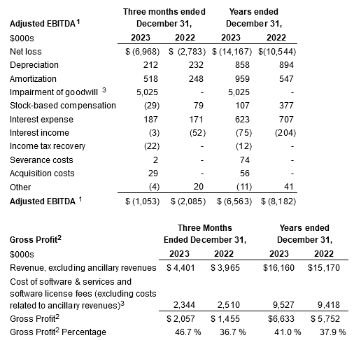 • Adjusted EBITDA(1): Adjusted EBITDA for the fourth quarter of 2023 was an outflow of $1.03 million; an improvement of 50.8% compared to an outflow of $2.08 million in the fourth quarter of 2022.