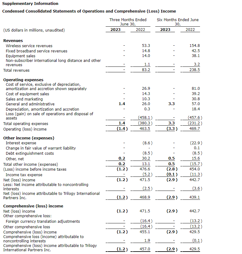 TRILOGY INTERNATIONAL PARTNERS INC. REPORTS SECOND QUARTER 2023 RESULTS