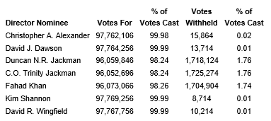 By a vote conducted by poll, the seven nominees set forth in the circular were elected as directors of the company. The specific voting results are as follows.