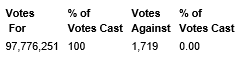By a vote conducted by poll, the special resolution in respect of the bylaw amendment, details of which were set forth in the circular, was passed. The specific voting results are as follows.