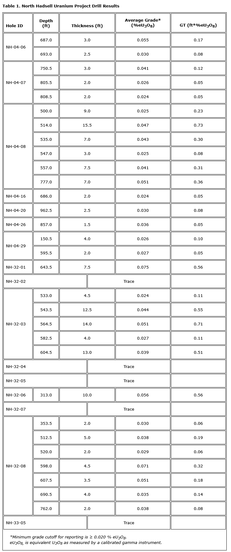 - Multiple stacked roll-front horizons: Exploration at North Hadsell has confirmed the presence of multiple stacked roll-front horizons with grades and thicknesses similar to the company's producing Lost Creek ISR mine, supporting confidence in recovery potential.