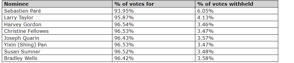 Final voting results on all matters voted on at the meeting will be filed on SEDAR.