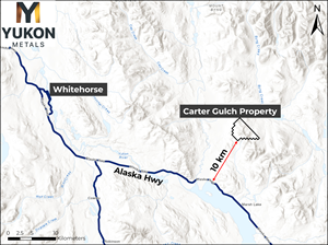 Location of the Carter Gulch property in relation to Whitehorse and the Alaska Highway.