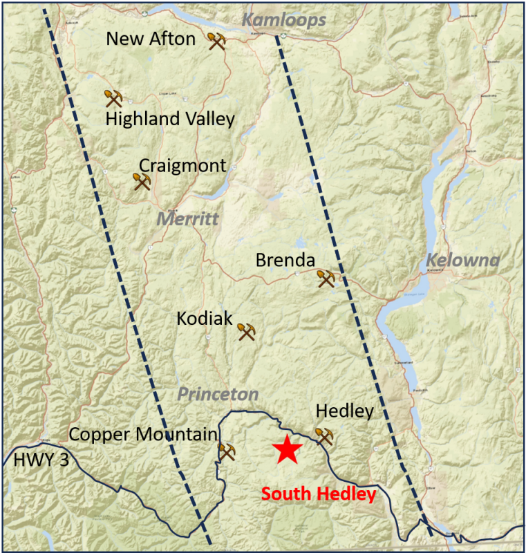 Figure 1. The South Hedley Copper-Gold Project is well situated in the Southern BC Copper Gold Belt.