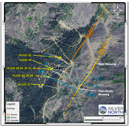 “The Main Fault continues to produce significant silver intersections at Haldane.” stated Jason Weber, P.Geo., President and CEO of Silver North. “The results of these holes mirror the initial holes on the 2024 discovery section with grades and widths becoming stronger as we tested downdip, as seen with our exceptional results in our first hole of this program (HLD25-31 – see news release dated November 17, 2025). I am looking forward to receiving the final set of assays from our 2025 program and embarking on the interrogation of all of our data with our technical team to determine controls and orientations of potential wider and higher grade plunge directions to silver bearing mineralization for an aggressive 2026 drill program at Haldane.”