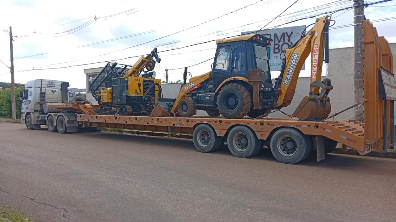 Figure 1.  Excavator and drill rig loaded on transport truck en route to the Madeira River Project.
