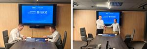 Caption: Dr. Tingjun Yang, CEO of 3E Network (right), signing the Master Services Agreement with representatives of Orka Technologies Oy (left).