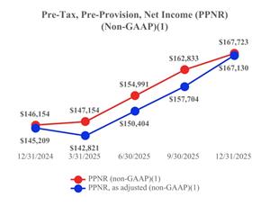 | | PPNR continued its upward trajectory throughout 2025, reflecting strong underlying earnings power. PPNR (non-GAAP)(1) grew from $146.2 million at Q4 2024 to $167.7 million at Q4 2025. PPNR, as adjusted, (non-GAAP)(1) increased to $167.1 million in Q4 2025 from $145.2 million in Q4 2024. This consistent growth highlights the strength of our operations and reinforces our ability to deliver sustained profitability and create long-term shareholder value.