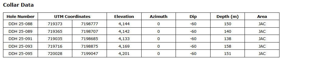 As part of the recently completed phase V drill program, the company has received additional assay results from drilling at JAC, which will be incorporated into the upcoming MRE. Recent drilling at JAC was primarily aimed at delineating the margins of known mineralization. Results confirm that silver mineralization remains present at the periphery of the deposit, although grades decrease as the company drills further away from the higher-grade core. The latest results are summarized in Table 1.