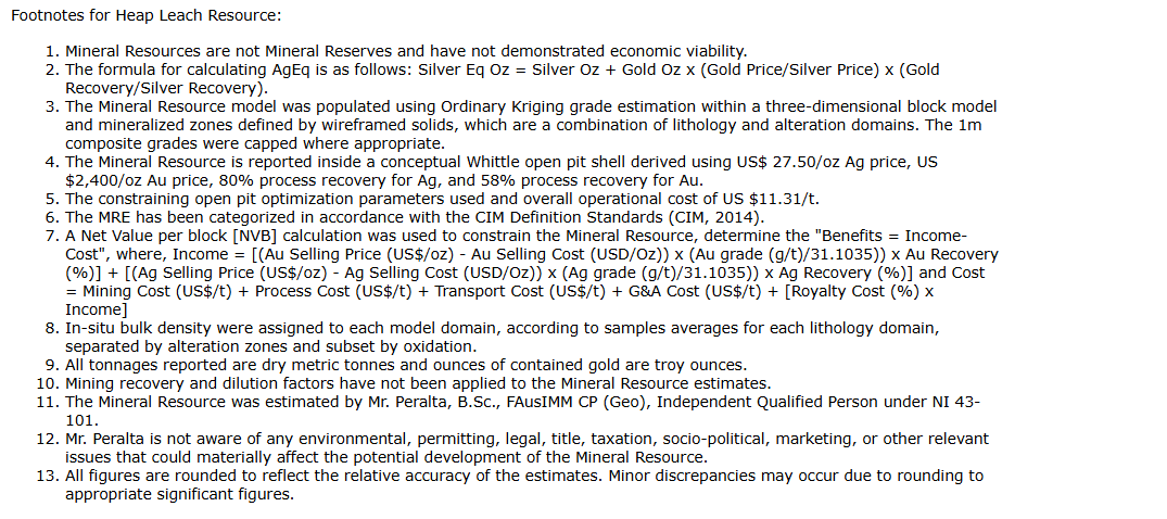 Comparatively nearby examples of high sulphidation epithermal deposits include: La Coipa (Chile); Yanacocha (Peru); El Indio (Chile); Lagunas Nortes/Alto Chicama (Peru) Veladero (Argentina); and Filo del Sol (Argentina). The most recent mineral resource estimate for Diablillos is shown in Table 2.