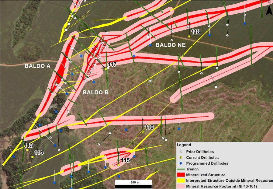The Cajueiro Central resource includes several subsectors, with the majority (54%) of contained gold within the northern Baldo subsector (Figure 3).
