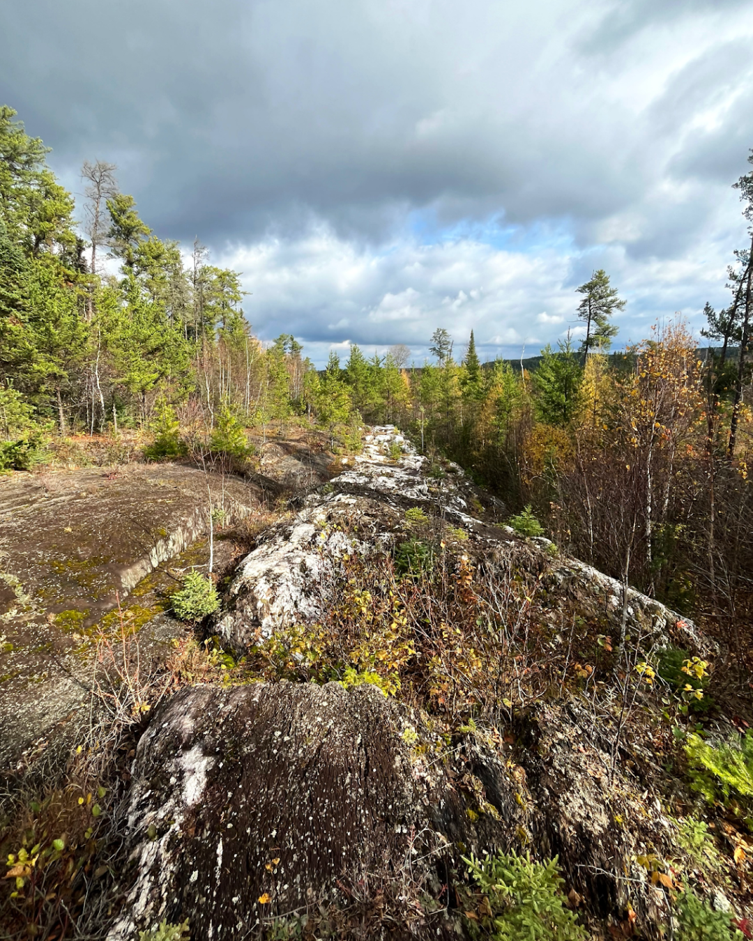 Lithologies are northeasterly trending, with variable, sub-vertical dips. The Alto-Gardnar showing itself, is situated along a 15-20 metre wide northeast-trending shear zone which is likely a bifurcation of a fault splay emanating from the Wabigoon Fault two kilometres to the north. The Alto-Gardnar zone is exposed for 340 metres and trending under overburden at both ends.