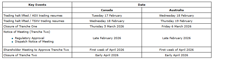 Closing of tranche one is expected on or about March 5, 2026 (Canada time), subject to receipt of all necessary corporate and regulatory approvals, including the approval of the TSX Venture Exchange.