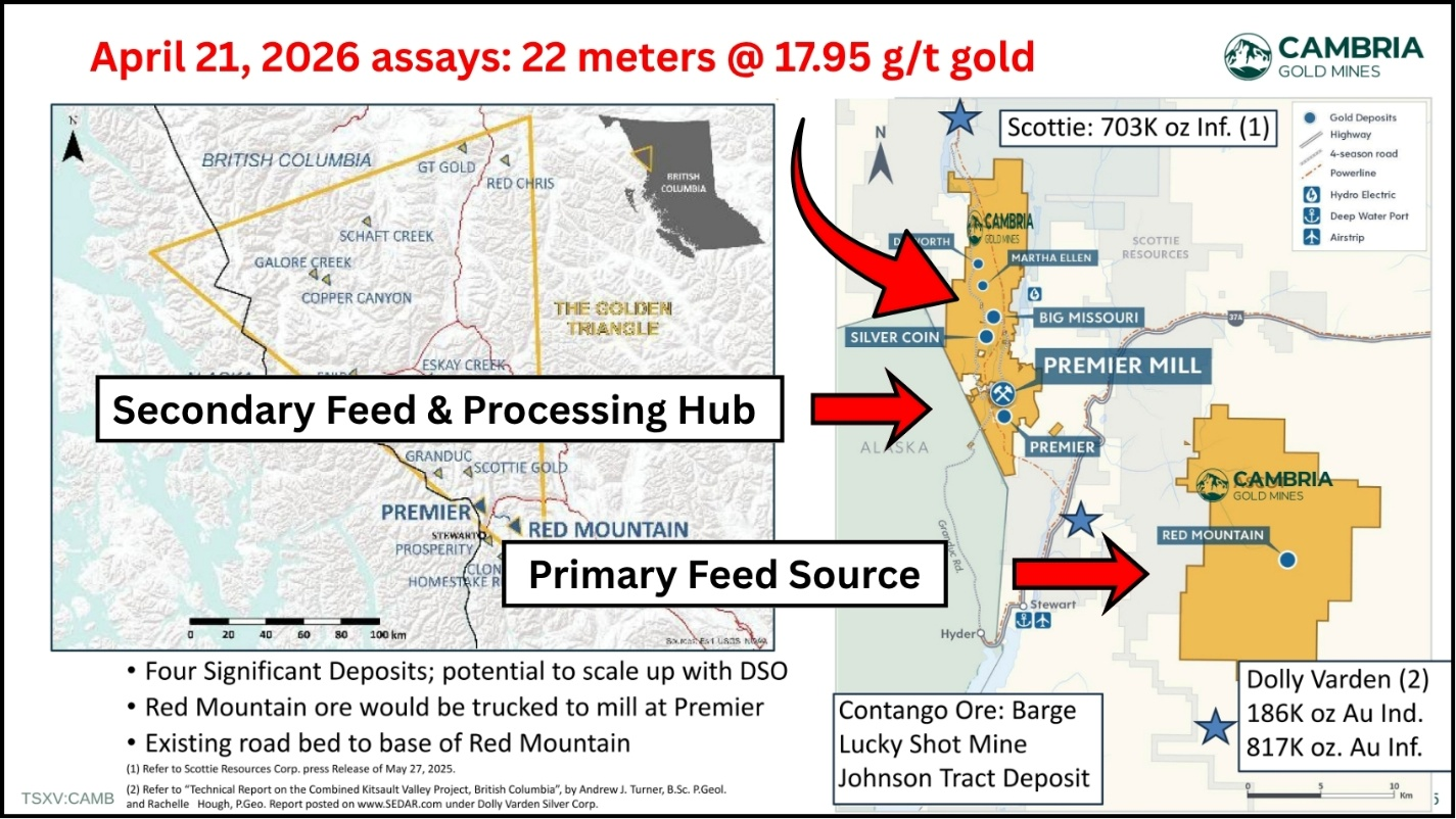 “We intend that the Premier Gold Project will serve as an infrastructure and processing hub , while Red Mountain is prioritized as the initial source of high-confidence mill feed ,” Robert McLeod, President and CEO of Cambria Gold Mines, told Guy Bennett, the CEO of Global Stocks News (GSN).
