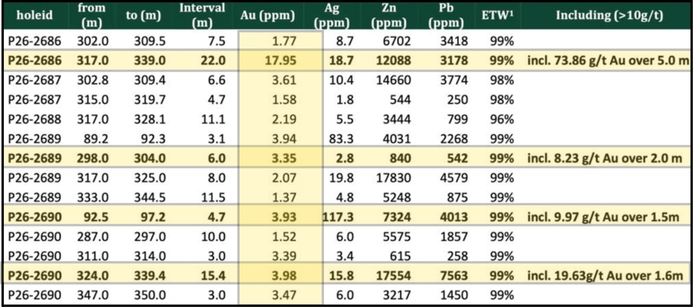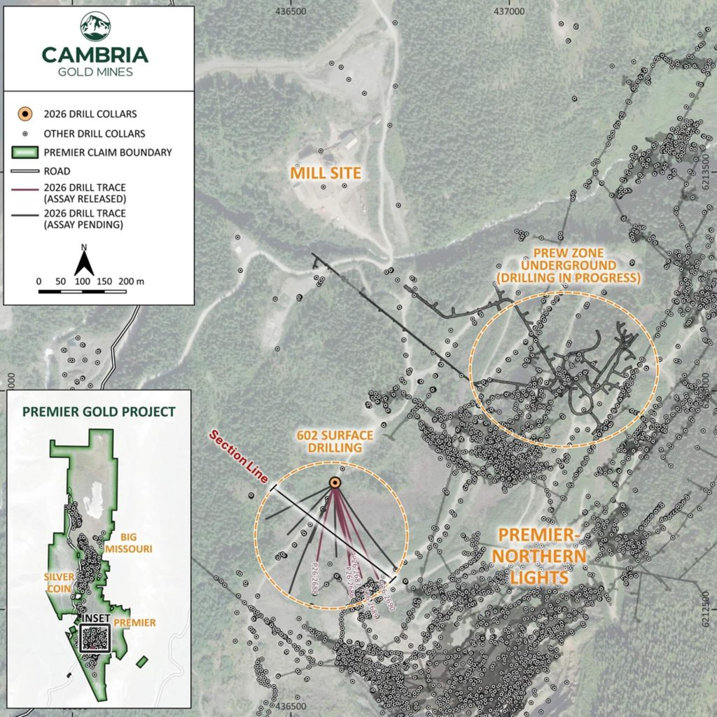 Vancouver, BC – TheNewswire -  April 27, 2026 – Global Stocks News - Sponsored content disseminated on behalf of Cambria Gold Mines. On April 21, 2026, Cambria Gold Mines (TSXV: CAMB; OTCID: AOTVF) announced the first results from its ongoing infill drilling at the Premier Gold Project ( PGP ) , located in northwestern British Columbia. Highlight intercept: 22 meters @ 17.95 grams per tonne (g/t) gold, including 552.0 g/t gold over 0.5 meters.