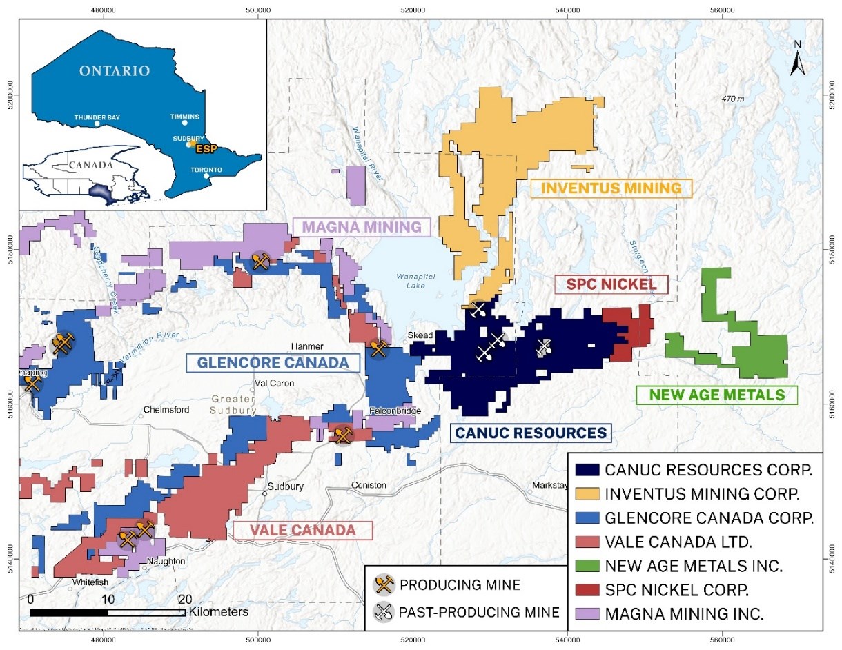 Figure 1. Canuc's East Sudbury Project (ESP) Regional Setting