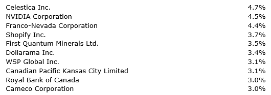 The top-10 investments which comprised 36.4 per cent of the investment portfolio at market as of Dec. 31, 2025, were as follows.