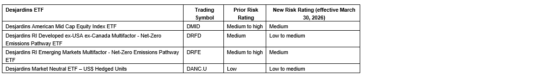 DESJARDINS ANNOUNCES CHANGES TO THE RISK RATING OF SOME DESJARDINS ETFS