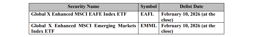 Additional information regarding the termination of the Global X ETFs can be found in the news release dated Dec. 5, 2025.