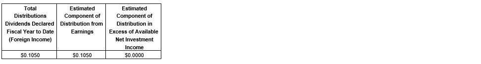 Past performance is no guarantee of future results. Investment returns and principal will fluctuate and shares, when sold, may be worth more or less than the original cost. Current performance may be lower or higher than the performance data quoted. Net asset value returned data include investment management fees, custodial charges, bank loan expenses and administrative fees (such as director and legal fees), and assume the reinvestment of all distributions. The company is subject to investment risk, including the possible loss of principal. Total return based on net asset value reflects changes in the company's net asset value during each period. Total return based on market price reflects changes in market value.