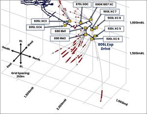 All drilling reported in this announcement has been conducted from the 805L drill drive. Whilst this development is currently being utilised for exploration, it will form an important part of future mine infrastructure for the potential upscaled operation.