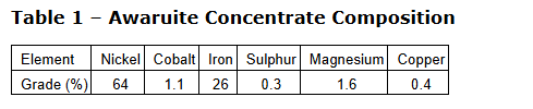 A second integration route is for the Baptiste awaruite concentrate to be refined in an existing third party nickel refinery. Although nickel refineries are generally sensitive to variations in feedstocks, awaruite concentrate can be used to supplement a portion of the feedstock, particularly for nickel refineries designed to treat both mixed hydroxide precipitate (MHP) and nickel matte -- the two most commonly interchangeable nickel intermediates. Awaruite concentrate has properties that position it between MHP and matte -- with fewer impurities than MHP but more than matte, and requiring less aggressive leaching than matte but more than MHP -- making it broadly comparable with both and a credible feedstock for nickel refineries. The production of bulk quantities of awaruite concentrate will enable this strategy to be validated by prospective downstream partners through direct testing of awaruite concentrate.