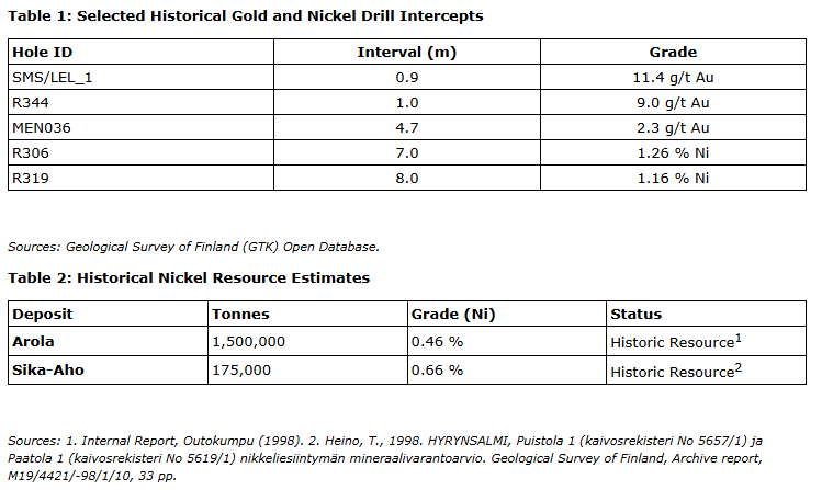 • Polymetallic potential -- the Kuhmo project hosts a known nickel endowment, including the Arola historical mineral resource of 1.5 million tonnes grading 0.46 per cent nickel;