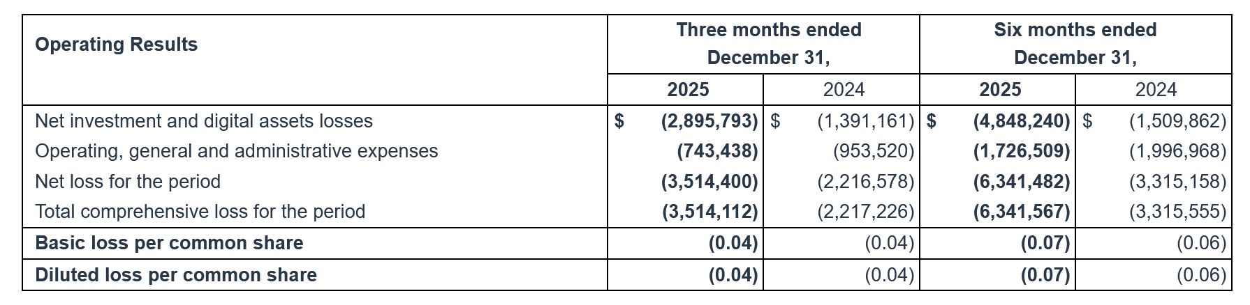 THREED CAPITAL INC. RELEASES RESULTS FOR THE THREE AND SIX MONTHS ENDED DECEMBER 31, 2025