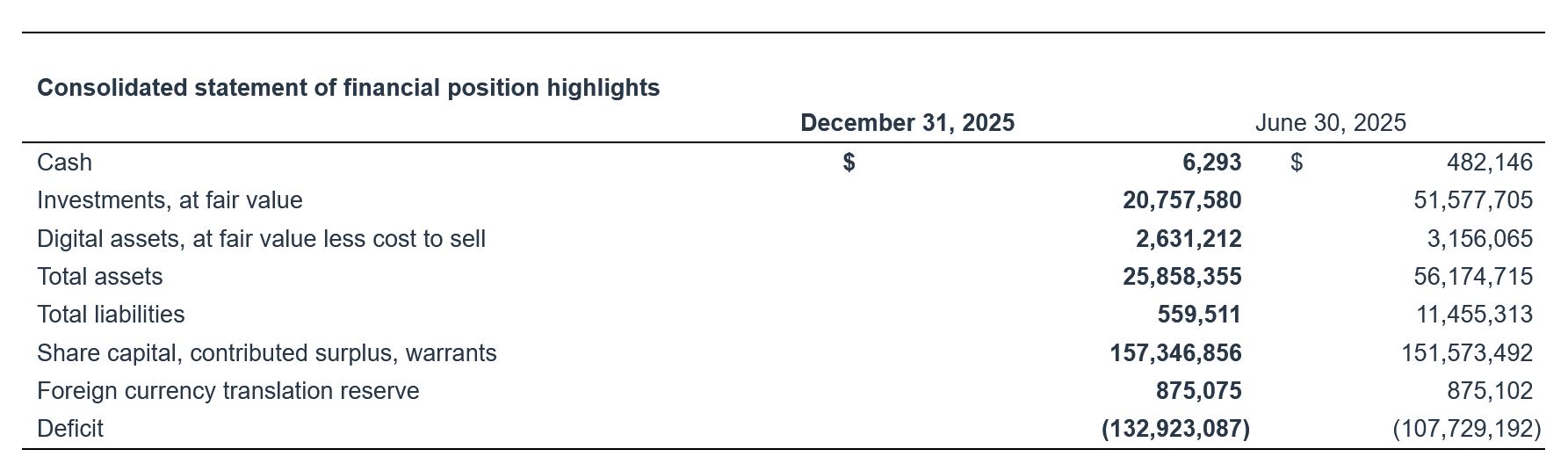 As at Dec. 31, 2025, the company had cash, investments and digital assets of $23.4-million.