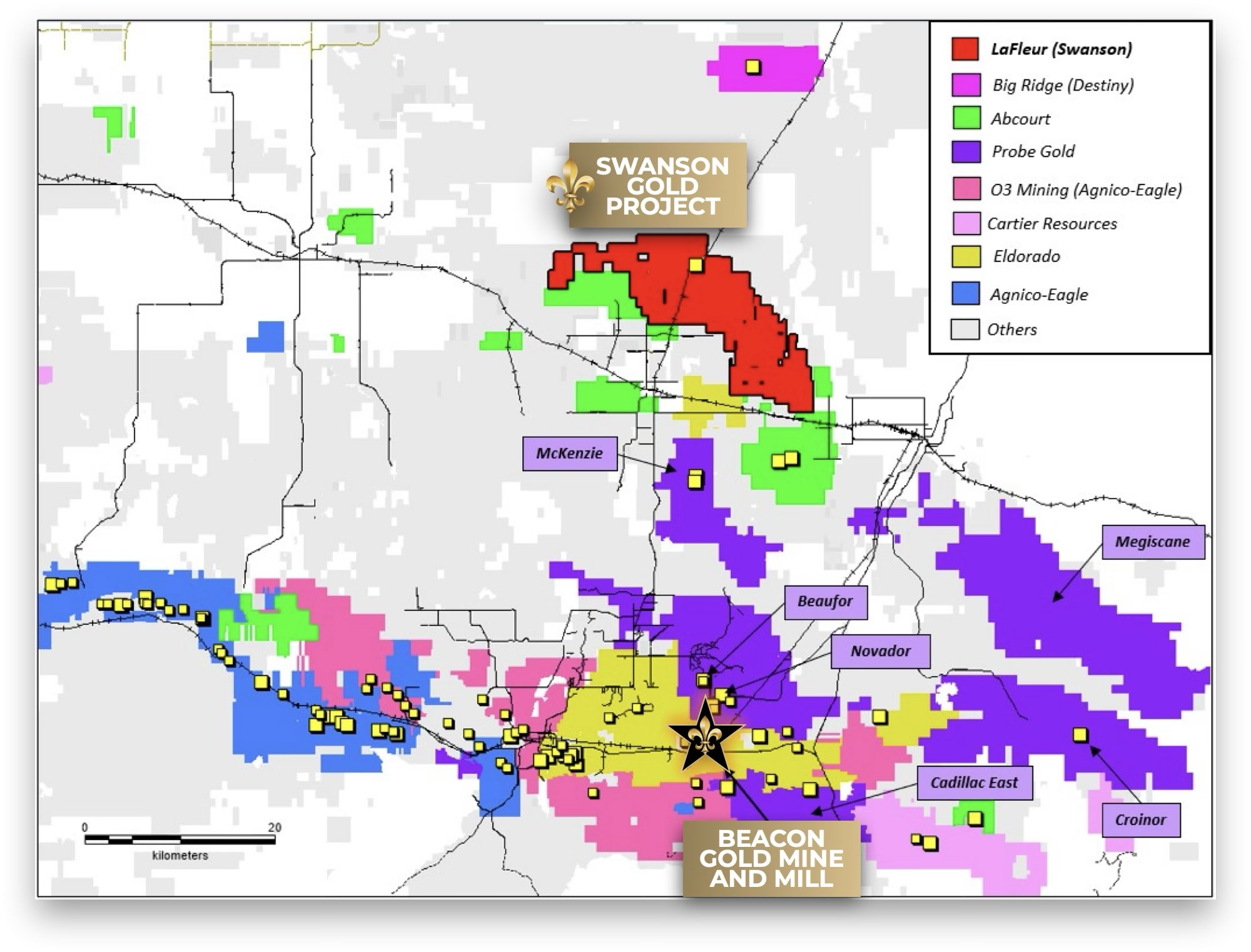 Figure 1: Regional View of LaFleur's Beacon Gold Mill and Swanson Gold Project
