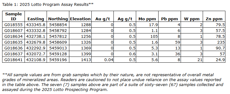Maxus Mining Inc. has provided a summary of analytical results from the 2025 field program at its Lotto tungsten property, located in the Trail Creek mining district in British Columbia. Maxus engaged Palliser Exploration Ltd. to complete a reconnaissance field program across the project in the fall of 2025. The first round of results of the 2025 exploration and sampling program at the project are summarized below.