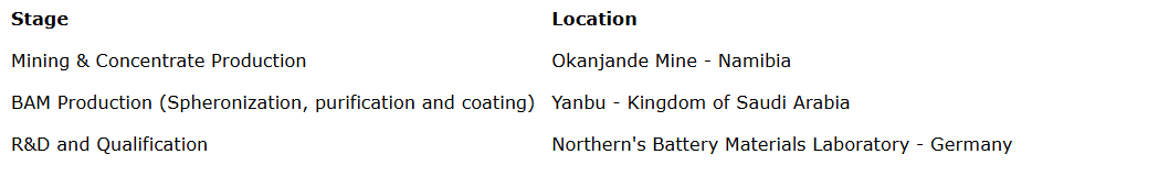 The joint venture provides scale, financing strength and geopolitical diversification, and will establish Northern as a fully integrated, globally relevant BAM producer and partner of choice for OEMs seeking secure, traceable supply chains. It also positions Okanjande as Northern's primary growth engine, responding directly to global efforts to reduce dependence on China for graphite supply. The Yanbu BAM plant will form part of a fully integrated, traceable, multijurisdiction supply chain for high performance anode material -- the largest component in lithium-ion batteries -- to global battery and electric vehicle manufacturers. The project is fully aligned with Saudi Arabia's Vision 2030, which prioritizes advanced manufacturing, energy transition technologies and downstream value creation.